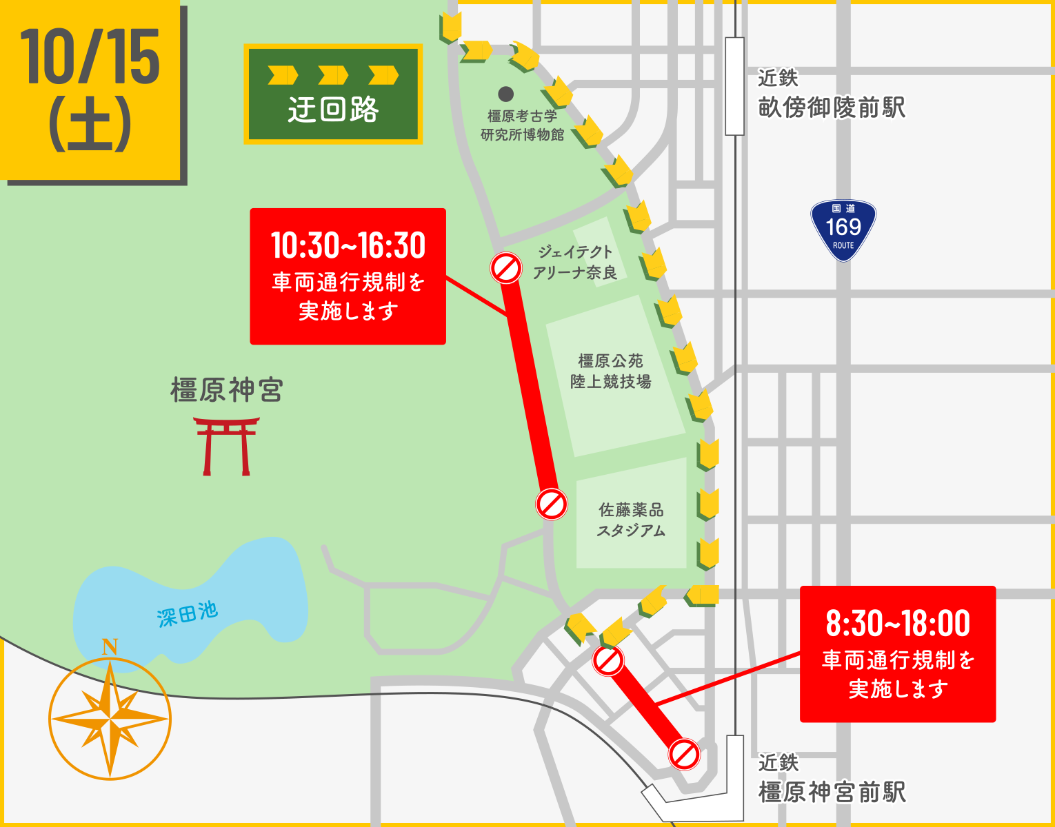 橿原神宮にお越しの皆様におかれましては、う回路をご利用いただきますよう、ご理解、ご協力をよろしくお願い申し上げます。