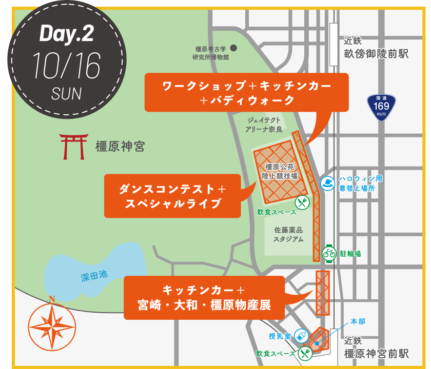 ■仮装の着替え場所は橿原公苑事務所2Fを用意しております。他の施設での着替えはご遠慮下さい。